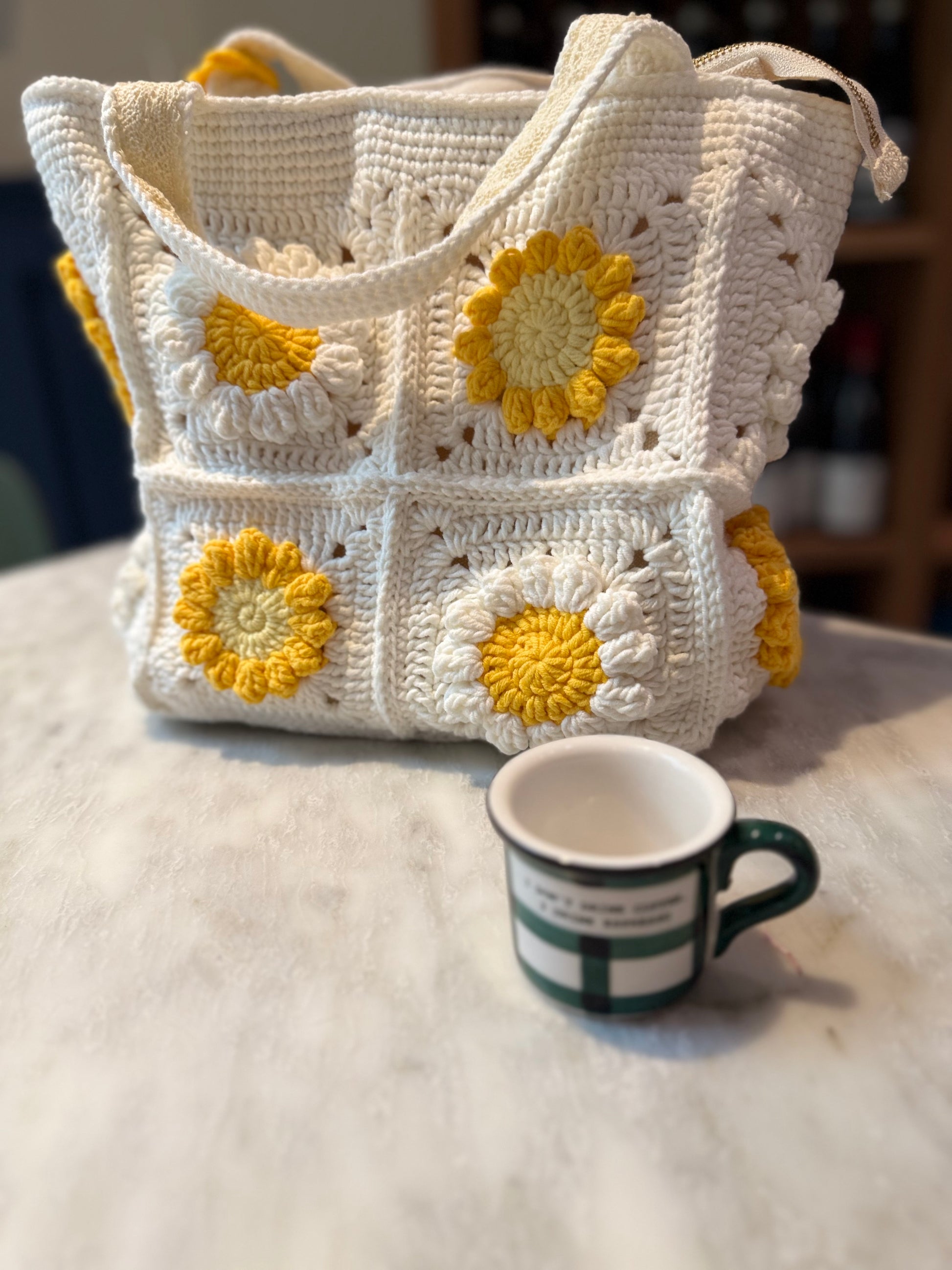 Medium crochet bag with a zipper for extra security. Holds a 12” iPad or MacBook, books, makeup, and more. Perfect for everyday use. Zipper Closure Bag.